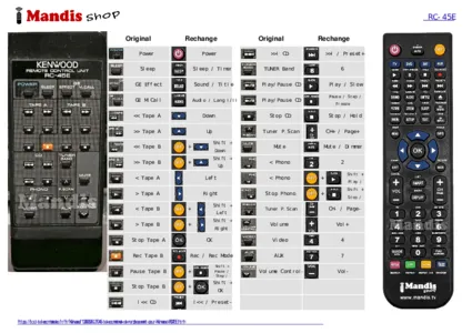 Cette télécommande remplace entièrement votre RC45E et offre toutes les fonctions de l'originale.