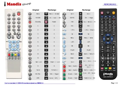 Un document est inclus pour vous aider à utiliser facilement la nouvelle télécommande, en indiquant la correspondance des boutons.
