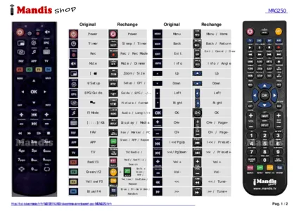 Un document est inclus pour vous aider à utiliser facilement la nouvelle télécommande, en indiquant la correspondance des boutons.