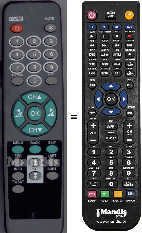 Télécommande qui remplace celle d'origine car elle possède les mêmes fonctions.