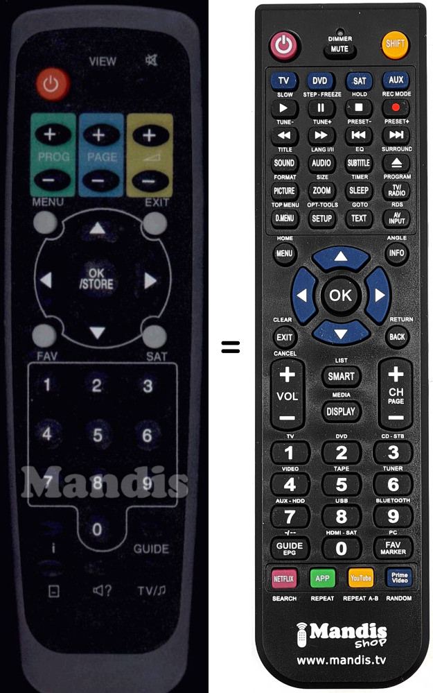 Télécommande qui remplace celle d'origine car elle possède les mêmes fonctions.