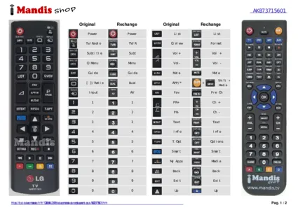 Cette télécommande remplace entièrement votre AKB 73655837 et offre toutes les fonctions de l'originale.