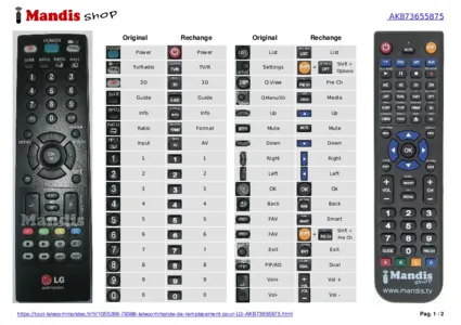 Cette télécommande remplace entièrement votre LG (AKB73655875) et offre toutes les fonctions de l'originale.