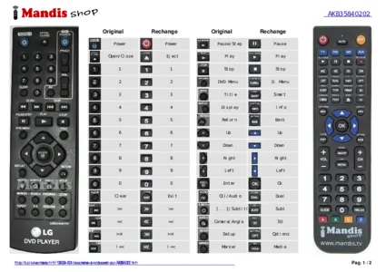 Un document est inclus pour vous aider à utiliser facilement la nouvelle télécommande, en indiquant la correspondance des boutons.