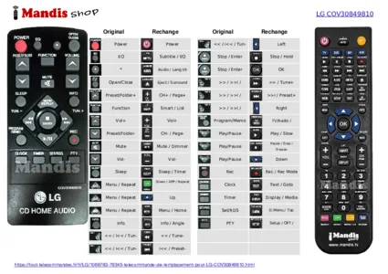 Télécommande pour LG COV30849810