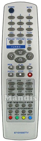Télécommandes équivalentes qui remplacent la télécommande LG 6710V00077V et possèdent exactement les mêmes fonctions :