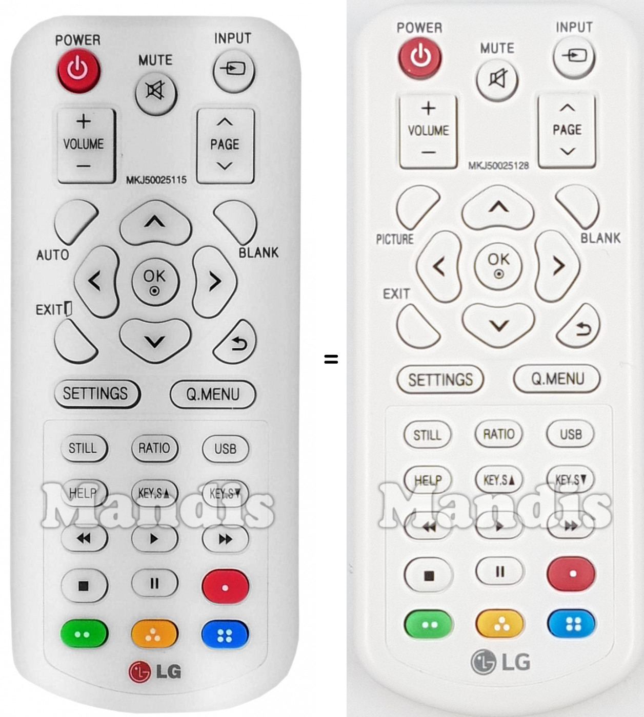 Télécommandes équivalentes qui remplacent la télécommande LG MKJ50025128 et possèdent exactement les mêmes fonctions :