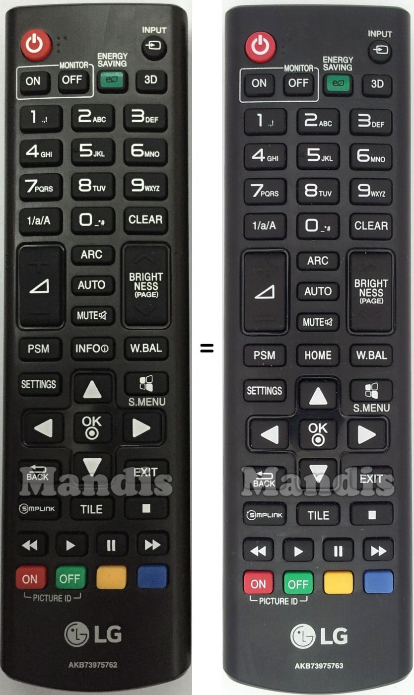 Télécommandes équivalentes qui remplacent la télécommande LG AKB73975763 et possèdent exactement les mêmes fonctions :