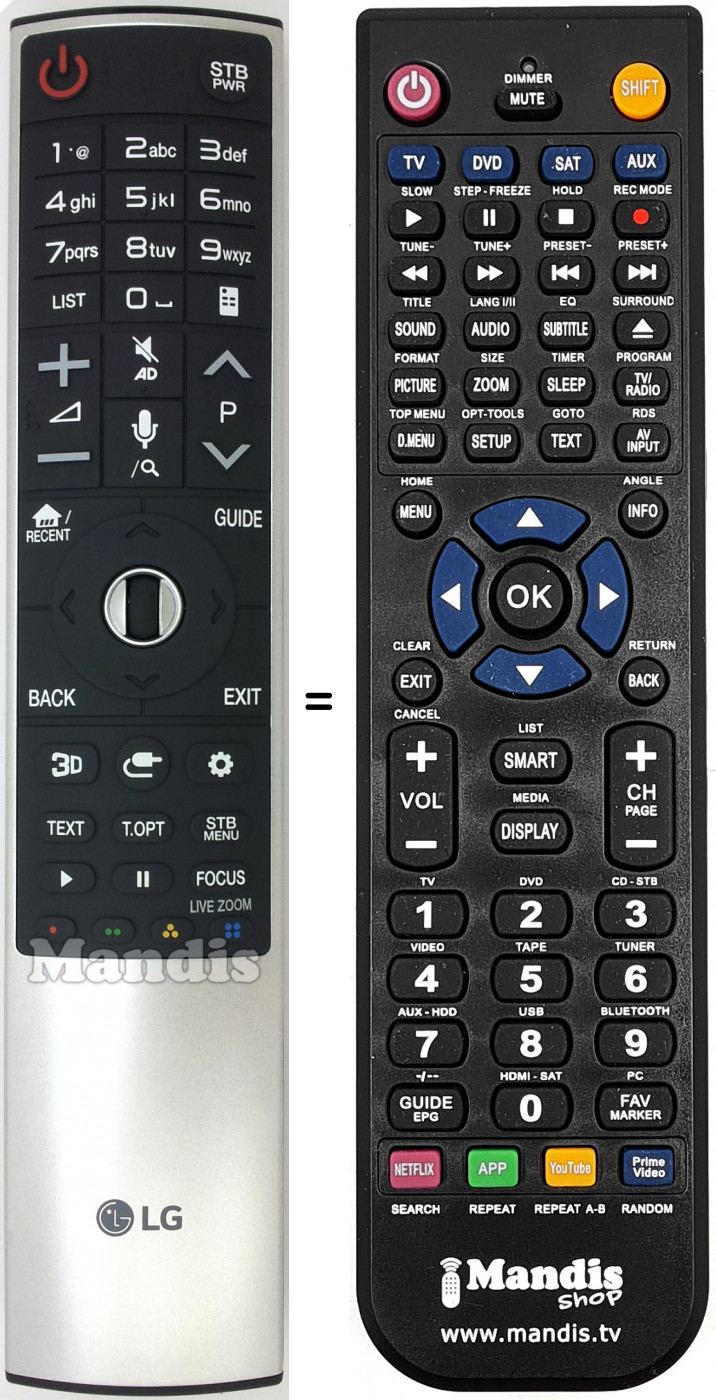Télécommande qui remplace celle d'origine car elle possède les mêmes fonctions.
