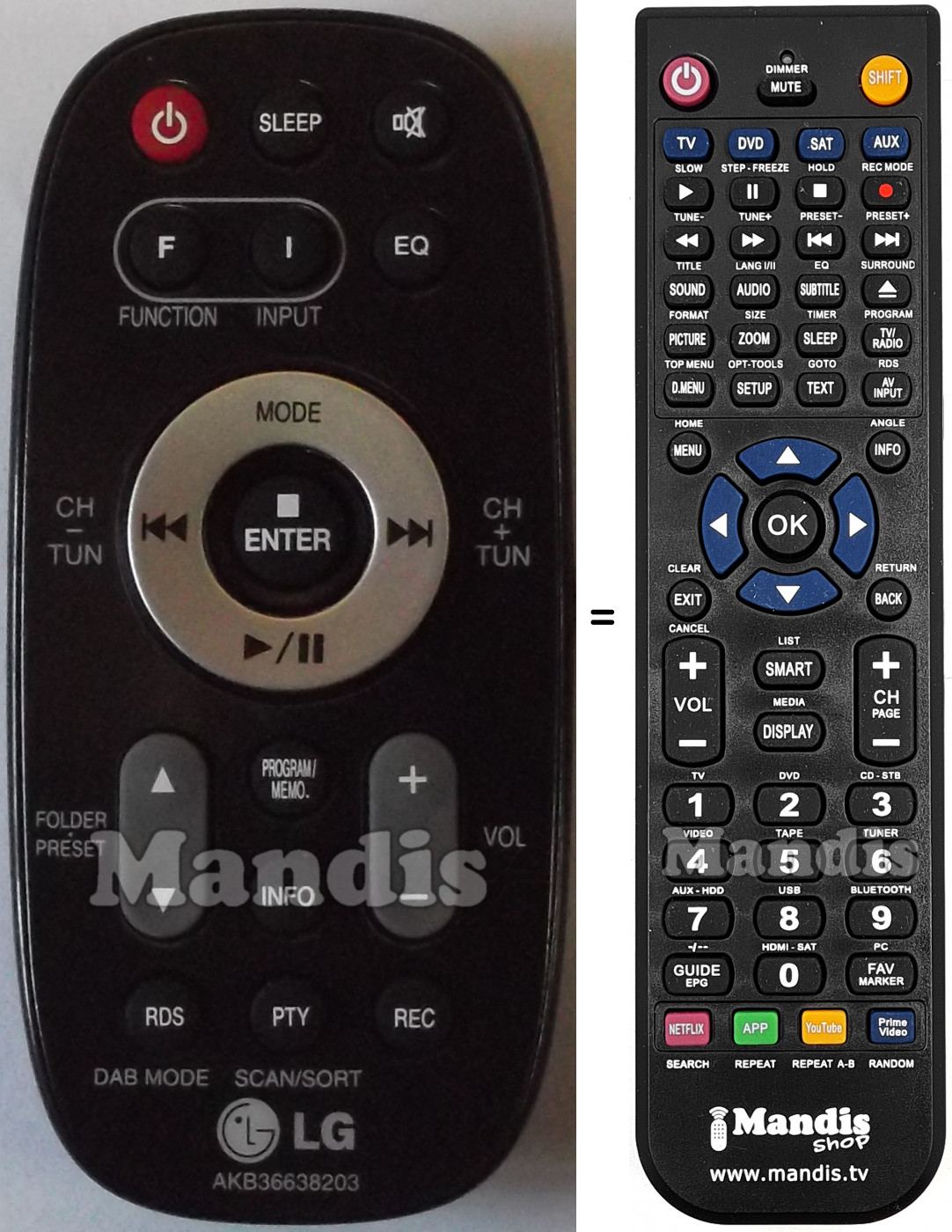 Télécommande équivalente LG 6711R1P038CDisponible en stock27,50 € (TVA incluse)