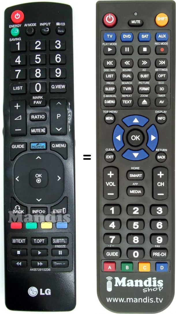 Télécommande équivalente LG AKB72915297Disponible en stock27,50 € (TVA incluse)