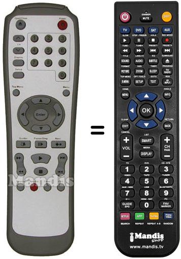 Télécommande qui remplace celle d'origine car elle possède les mêmes fonctions.