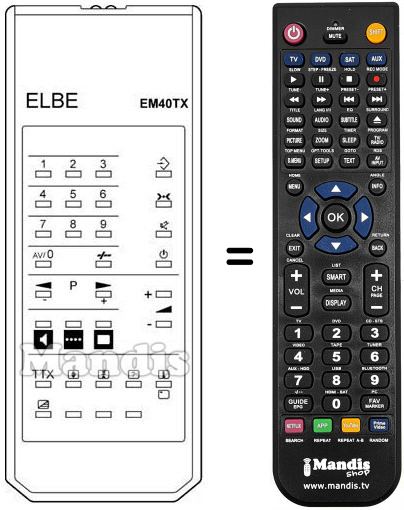 Télécommande qui remplace celle d'origine car elle possède les mêmes fonctions.