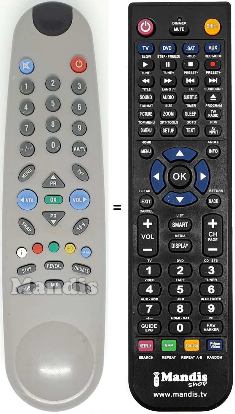 Télécommande qui remplace celle d'origine car elle possède les mêmes fonctions.