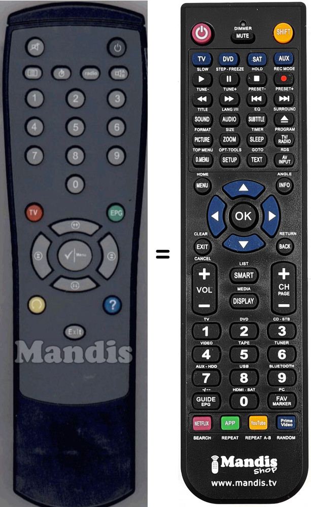 Télécommande qui remplace la télécommande d'origine 040 via CI car elle possède les mêmes fonctions.