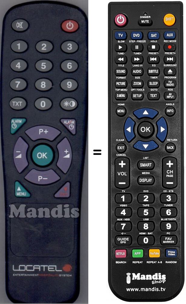 Télécommande qui remplace celle d'origine car elle possède les mêmes fonctions.