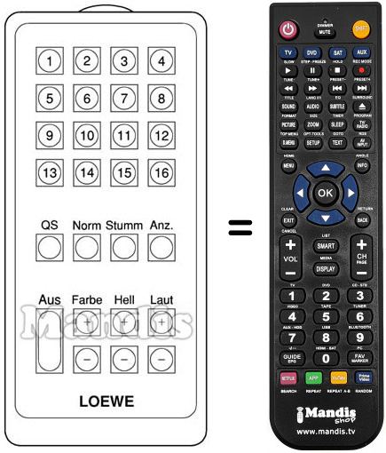 Télécommande qui remplace celle d'origine car elle possède les mêmes fonctions.