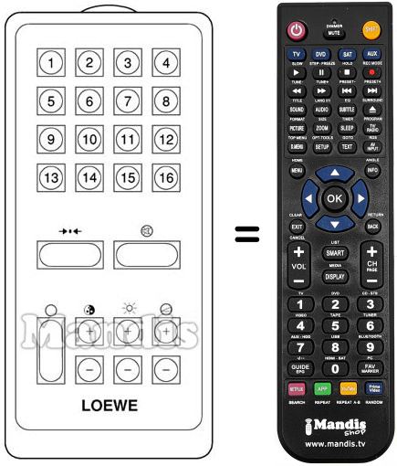 Télécommande qui remplace celle d'origine car elle possède les mêmes fonctions.
