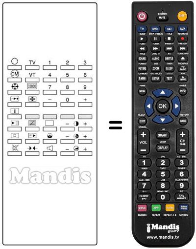Télécommande qui remplace celle d'origine car elle possède les mêmes fonctions.