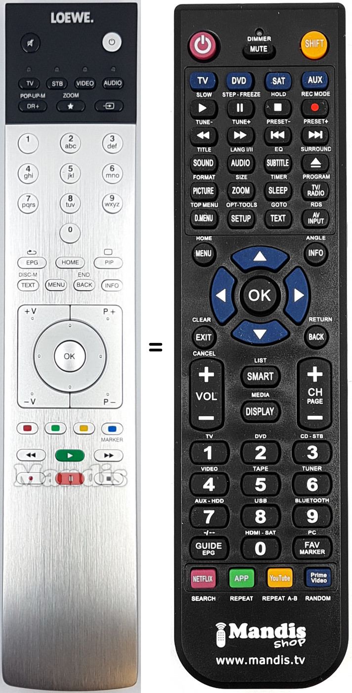 Télécommande qui remplace celle d'origine car elle possède les mêmes fonctions.