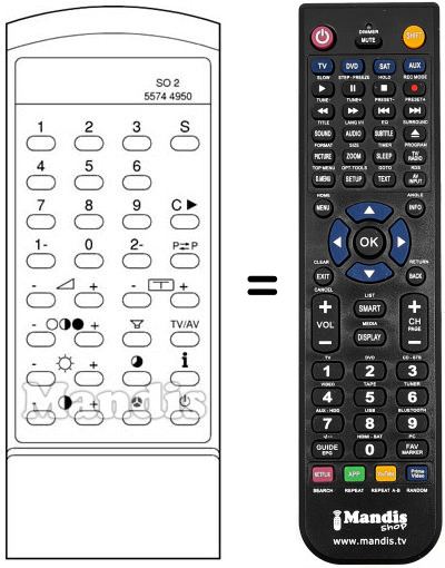 Télécommande qui remplace celle d'origine car elle possède les mêmes fonctions.