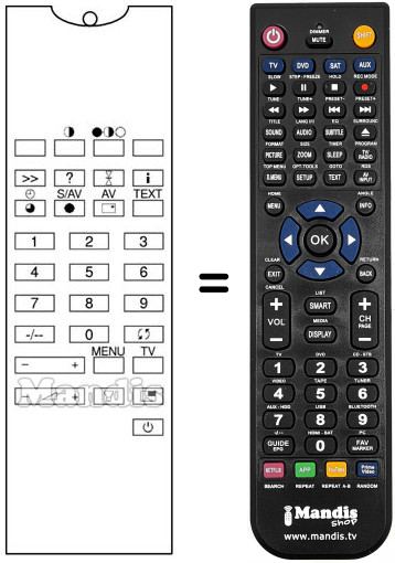 Télécommande qui remplace celle d'origine car elle possède les mêmes fonctions.