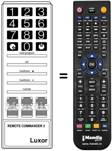Télécommande qui remplace celle d'origine car elle possède les mêmes fonctions.