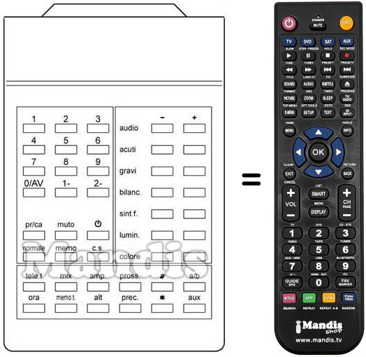 Télécommande qui remplace celle d'origine car elle possède les mêmes fonctions.
