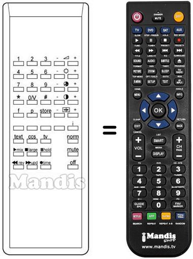 Télécommande qui remplace celle d'origine car elle possède les mêmes fonctions.