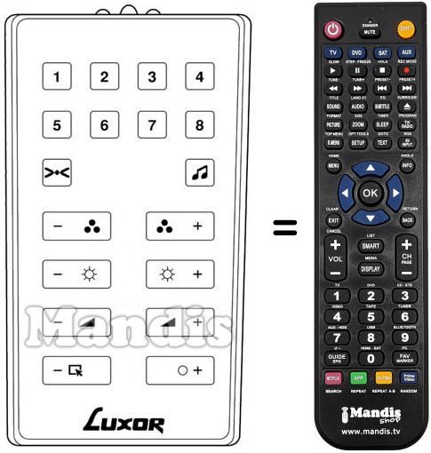 Télécommande qui remplace celle d'origine car elle possède les mêmes fonctions.