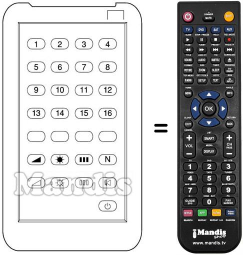 Télécommande qui remplace celle d'origine car elle possède les mêmes fonctions.