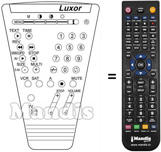 Télécommande qui remplace celle d'origine car elle possède les mêmes fonctions.