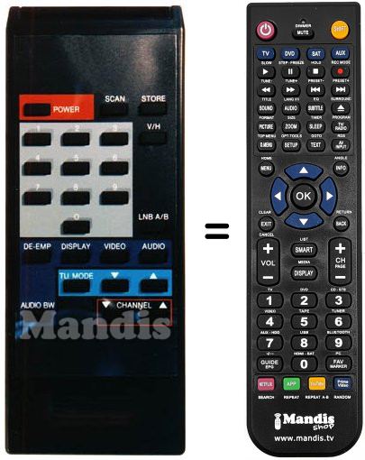 Télécommande qui remplace celle d'origine car elle possède les mêmes fonctions.