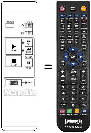 Télécommande qui remplace la télécommande d'origine 143.9.4100.62382 car elle possède les mêmes fonctions.