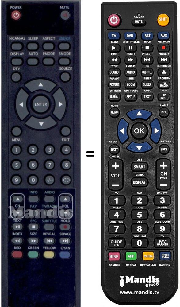 Il ne s'agit pas d'une télécommande universelle mais d'une télécommande qui remplace celle d'origine.