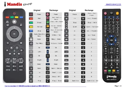 Un document est inclus pour vous aider à utiliser facilement la nouvelle télécommande, en indiquant la correspondance des boutons.