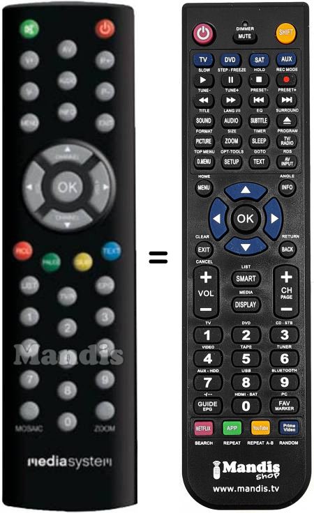 Télécommande qui remplace celle d'origine car elle possède les mêmes fonctions.