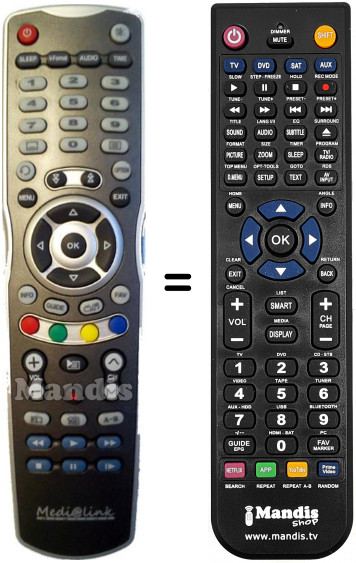 Télécommande qui remplace celle d'origine car elle possède les mêmes fonctions.