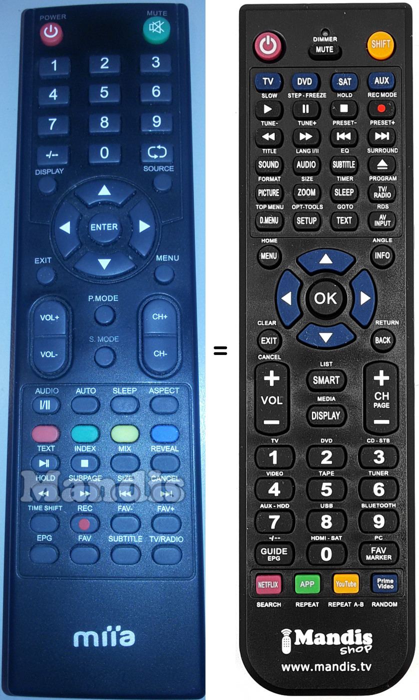Télécommande qui remplace celle d'origine car elle possède les mêmes fonctions.
