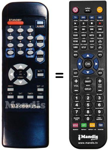 Télécommande qui remplace celle d'origine car elle possède les mêmes fonctions.