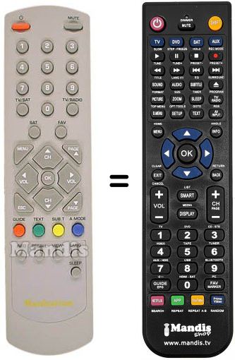 Télécommande qui remplace celle d'origine car elle possède les mêmes fonctions.