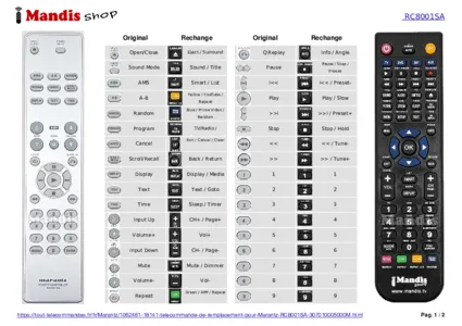 Un document est inclus pour vous aider à utiliser facilement la nouvelle télécommande, en indiquant la correspondance des boutons.