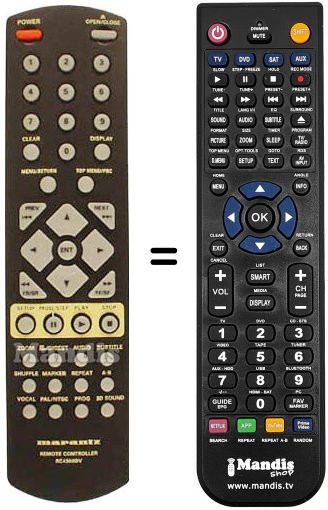 Télécommande qui remplace celle d'origine car elle possède les mêmes fonctions.