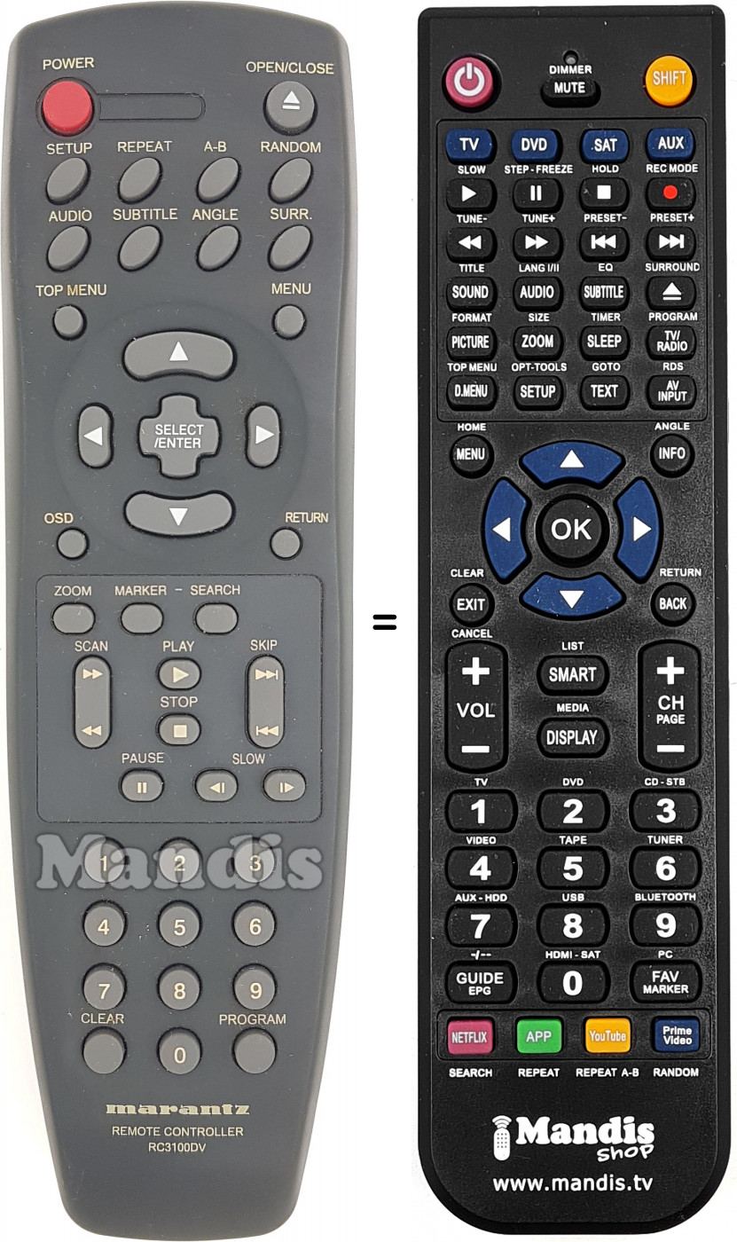 Télécommande qui remplace celle d'origine car elle possède les mêmes fonctions.