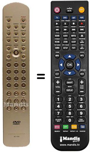 Télécommande qui remplace celle d'origine car elle possède les mêmes fonctions.