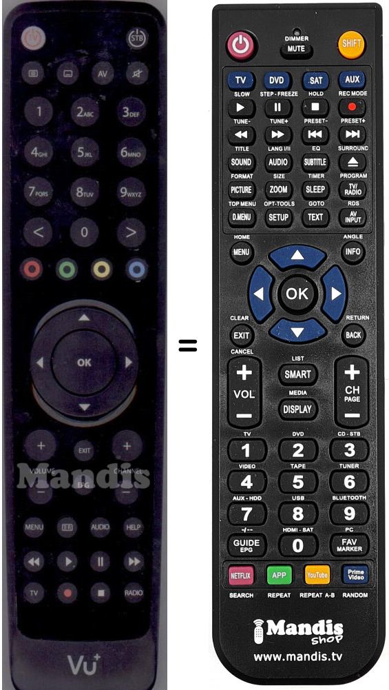 Télécommande qui remplace celle d'origine car elle possède les mêmes fonctions.