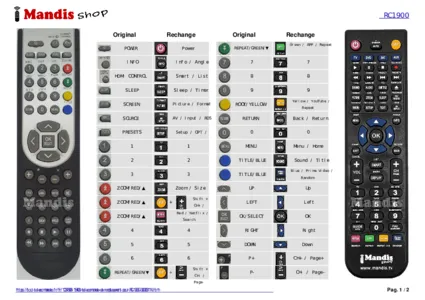 Un document est inclus pour vous aider à utiliser facilement la nouvelle télécommande, en indiquant la correspondance des boutons.