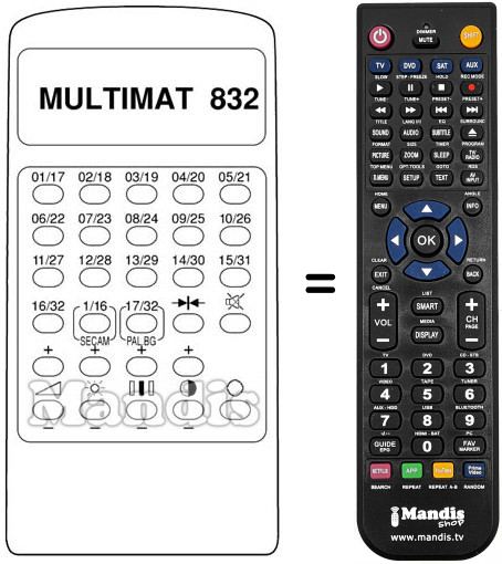 Télécommande qui remplace la télécommande d'origine MULTIMAT 832 car elle possède les mêmes fonctions.