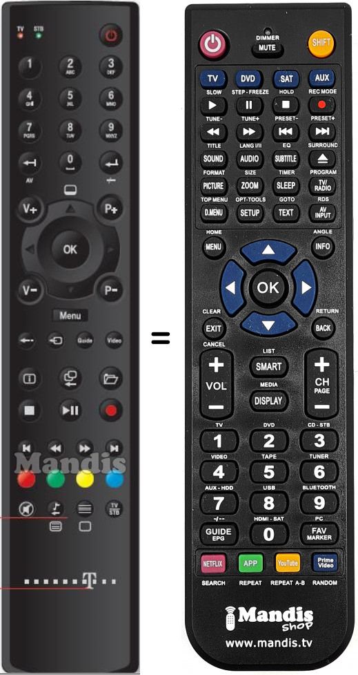Télécommande qui remplace celle d'origine car elle possède les mêmes fonctions.