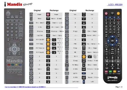 Un document est inclus pour vous aider à utiliser facilement la nouvelle télécommande, en indiquant la correspondance des boutons.